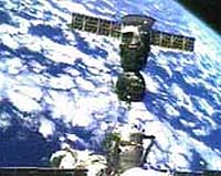 A Nemzetközi Űrállomás tizedik legénysége (Leroy Chiao amerikai és Szalizsan Saripov orosz űrhajós) sikeresen végrehajtotta a kitűzött feladatot. Ezalatt rövid időre lakatlanná vált az űrállomás, és Saripov is ideiglenesen átvette a parancsnokságot amerikai kollégájától. A Szojuz űrhajó eredetileg az orosz Pirsz modulhoz kapcsolódott, most pedig a Zarja modulnál "parkol". A manőver célja a Pirsz felszabadítása, hiszen egy esetleges űrséta esetén itt közlekednek ki-be az űrállomás lakói. Amíg a Szojuz ott volt, ez kockázatot jelentett volna: körülményesebbé tette volna az űrállomásra való visszatérést. (Kép: NASA)