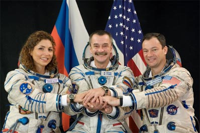 A Szojuz TMA-9 utasai: balról jobbra Anousheh Ansari, Mihail Tyurin és Mike Lopez-Alegria
