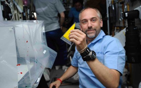 Garriott az ISS fedélzetén, a súlytalanságban festett is. (Kép: RichardInSpace.com / Space Adventures)