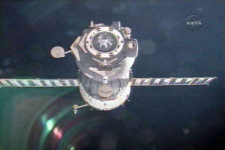 A Szojuz TMA-12 közel három és fél órával a landolás előtt hagyta el az ISS-t. (Kép: NASA TV)