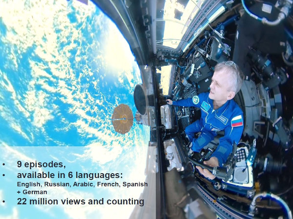 A filmek a Russia Today (RT) tévécsatorna, a Roszkoszmosz orosz űrügynökség és az Enyergija vállalat együttműködésében készültek. A Space 360 sorozat filmjeinek különlegessége, hogy lejátszás közben a kép körbeforgatható, valójában nem is csak 360 fokban, hanem a tér bármely irányába nézhetünk. A filmek az RT honlapján, a lent megadott címen tekinthetők meg, de a YouTube-on is megtalálhatók.