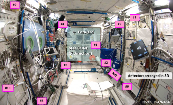 A DOSIS-3D detektorainak elhelyezkedése a Columbus modul belsejében. (Kép: ESA / NASA)