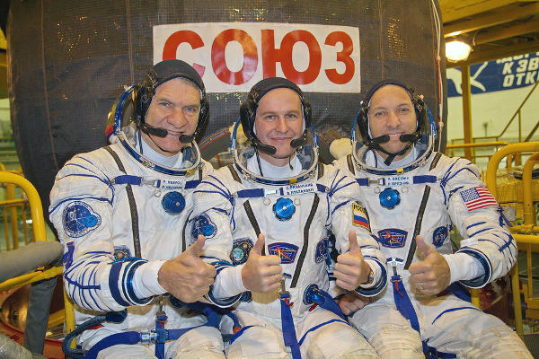 Három nemzet űrhajósa a Szojuz TMA-20 fedélzetén