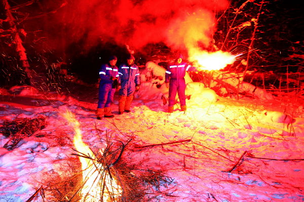 A tevékenység a sajtó számára tartott bevezetővel kezdődött, ahol a képzés vezetője, Anatolij Zabruszkov bemutatta az űrhajósok felszerelését. Ez tartalmaz meleg ruhát, tábori felszerelést, három napra elegendő élelmiszert és hat liter vizet. Az újságírók megtapasztalhatták a téli erdő extrém körülményeit és bepillanthattak a táborozók életébe.