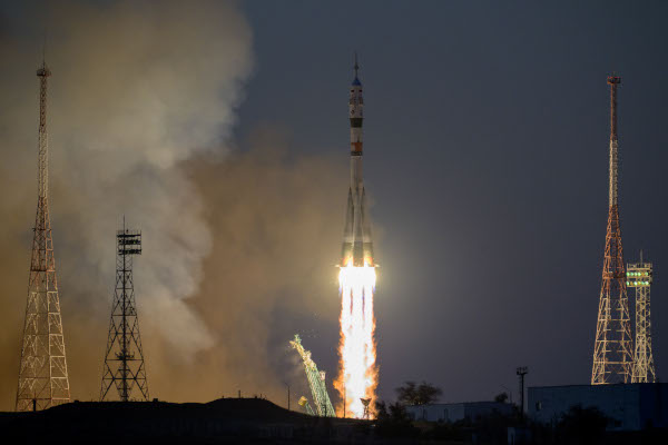Egy Szojuz űrhajó indul Bajkonurból az ISS-hez. Legutóbb február 24-én a Szojuz MSZ-23 startolt, utasok nélkül, hogy azzal hozzák majd haza a megsérült Szojuz MSZ-22 három űrhajósát. A startnaptárban legközelebb május 24-én látható egy indítás, a Progressz MSZ-23 teherűrhajóé. (Kép: NASA / Bill Ingalls)