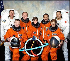 Képünkön az STS-114 (Discovery) legénysége. Elöl jobbról-balra: Eileen M. Collins (parancsnok-pilóta), Wendy B. Lawrence (küldetés specialista), James M. Kelly (pilóta). A hátsó sorban balról-jobbra: Stephen K. Robinson, Andrew S. W. Thomas, Charles J. Camarda és Soichi Noguchi - valamennyien küldetés specialisták. Az amerikai Robinson és a japán űrügynökséget képviselő Noguchi űrsétákat is végre fog hajtani az ISS-nél, ezért a fotózáshoz is ennek megfelelően öltöztek. (NASA fotó)