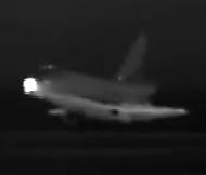 A Discovery az Edwards Légitámaszponton, közvetlenül a talajt érés előtt ill. a megérkezés után - infravörös kamerával készült éjszakai felvételek (Képek: NASA TV)