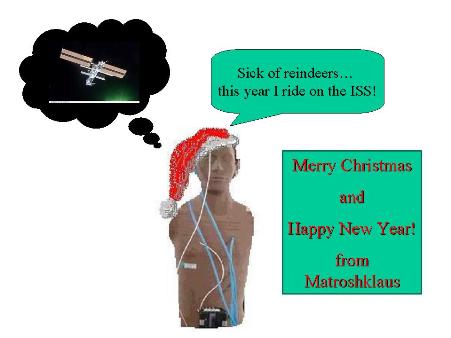 A tréfás „Matrjoska-mikulás” szövege: Elegem van a rénszarvasokból, idén az űrállomáson utazom! (A szerk.) Kapcsolódó cikkek: