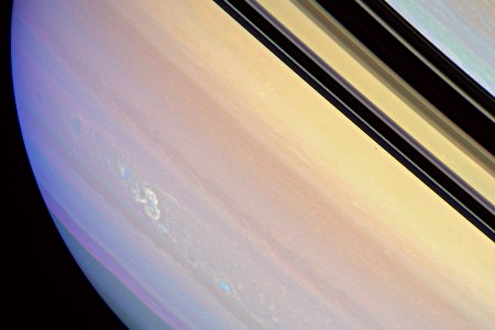 A Cassini-űrszonda által először 2007. november végén, elektromágneses jelei alapján megfigyelt vihar már eddig is időrekordot állított fel. Az alábbi kép 2008 márciusában készült róla. Fejlődésének tanulmányozásából a légkörkutatók akár a földi időjárással kapcsolatos következtetéseket is levonhatnak.