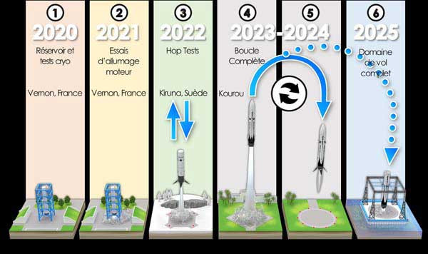 A francia űrügynökség (CNES) és az Arianespace megkezdte egy új, többször használható hordozórakéta (csak egy első fokozat!) fejlesztését. A munkára a fenti két cég egy projekt-teamet hozott létre ArianeGroup néven, s a munkát az Európai Űrügynökség (ESA) részben finanszírozza. A Themis nevet viselő rakétafokozat (1. fokozat) magassága 30, átmérője pedig 3,5 méter lenne, és 150 tonna kriogén hajtóanyagot fogadhat majd be. A gyakorlati feladatokhoz az ArianeWorks újra nyitotta a Vernonban (Normandia) lévő „történelmi” tesztállásokat és fékpadot. Itt fogják elvégezni a rakétába szánt Prometheus hajtóművel a függőleges teszteket 2021-ben. Az első függőleges emelkedésekre és ereszkedésekre a svédországi Kirunában kerülhet sor 2022-ben. A munkát Francia Guyanában folytatnák, immár három – egyszerre működő – hajtóművel és szuborbitális pályán, 2023–2024-ben. Az első műholdindítást 2025-ig tervezik. Fontos hangsúlyozni, hogy a Themis nem egy sorozatban gyártott rakéta lesz, csak a függőleges emelkedés, ereszkedés és landolás technológiájának vizsgálatára szánják, azaz egy technológiai demonstrátor. Hosszú távon az a cél, hogy az európai rakétaindítási költségeket valahogy a felére csökkentsék.