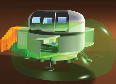 Egy modul-rendszerű Mars-laboratórium, felfújható extra élettérrel. (Bécsi Műszaki Egyetem, Építészeti és Épület-konstrukciós Intézet)