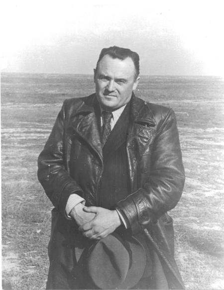 Szergej Koroljov – akit haláláig csak „Főkonstruktőrként” ismerhetett a világ – 1955-ben, valószínűleg terepszemlén, Bajkonurban. (APN)