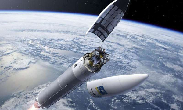 A műholdakat fedő orrkúp szétválása a felbocsátást követően. (Fantáziakép: ESA)