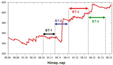 Az űrállomás pályamagasságának változása a BioTrack vizsgálatok alatt.