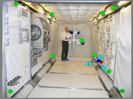 Az első hét vizsgálat valamelyik orosz modulban történt. Ezek helyét az előző cikkünkben találhatják meg. A Columbus modulban a helyszíneket a következő ábra mutatja be.