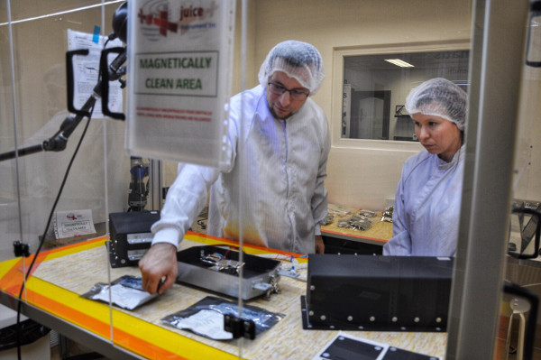 Koczák Péter a műszaki előadás után körbevezette az érdeklődőket a cég laboratóriumaiban, ahol megtekinthették az említett prototípust és az MLI fóliákat a legszigorúbb higiéniai körülmények között. Érdekesség, hogy ezek a fóliakabátok legalább 20 rétegből állnak, amelyek egymásra illesztését és ragasztását a szakemberek a lehető legnagyobb precizitással végezték az erre a célra kialakított „tiszta szobában”. Ennek oka, hogy minimalizálják a bevonatokra kerülő szennyeződéseket, amelyek jelenléte nemkívánatos, mivel nagymértékben befolyásolhatják a kutatások eredményeit. A jelenlegi tervek szerint a JUICE Kourouból, Ariane-5 rakétával indul 2022-ben, és öt gravitációs lendítés (három a Földnél, egy a Vénusznál és egy a Marsnál) után, 2030-ban érkezik meg a Jupiterhez, ahol legalább három évig végez majd méréseket.