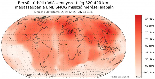 Méréseinek köszönhetően képet alkothattunk az űrbe kijutó elektromágneses szennyezettség mértékéről. Ezeket szemléletes ábrákon mutattuk be területi elosztás szerint (2. ábra) vagy akár egy-egy területre jellemzően, frekvenciatartomány szerint is (3. ábra).