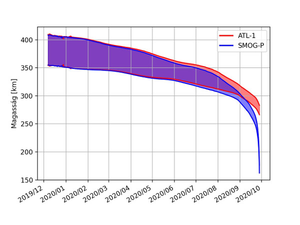 4. ábra: A SMOG-P és ATL–1 pályáinak magassága a felbocsátástól a SMOG-P visszatéréséig. (Kép: BME)