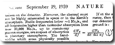 1959. szeptember 19-én jelent meg a Nature-ben az első, a modern értelemben vett SETI-vel foglalkozó cikk.
