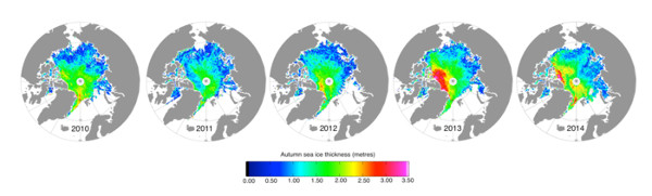Az arktiszi jégtakaró vastagságán is kimutatható volt, hogy a 2013-as nyár hűvösebb volt az előző évieknél.