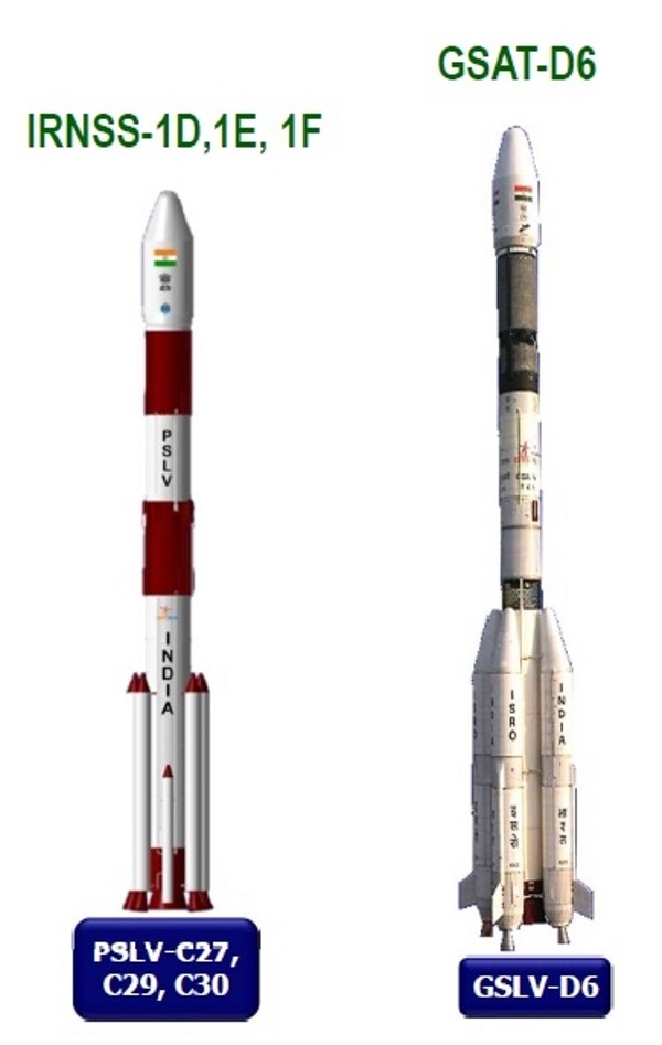 A PSLV-vel öt startot terveznek 2015-re, a GSLV egy távközlési műholdat fog geoszinkron pályára állítani. (Képek: ISRO)