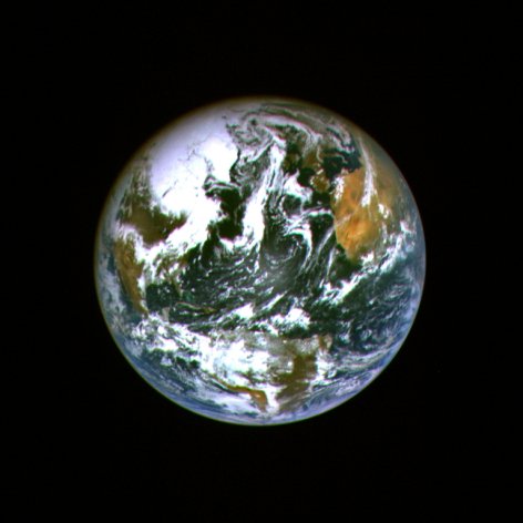 A szonda, miután sikeresen végrehajtotta az első hintamanővert, képeket készített a Földről és a Holdról. A Földről készített felvétel idején (május 17.) a szonda 295 000 km távolságban volt bolygónktól. A kép a szonda egyik igen fontos műszerével az Asteroid Multiband Imaging Camera (AMICA) segítségével készült, három felvétel összegzéséből.
