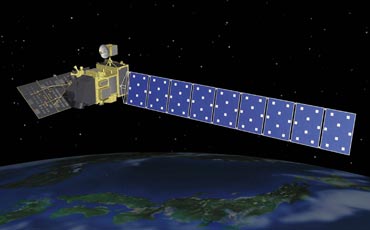 A 2006 januárjában indult, 700 km magas poláris napszinkron pályán keringő Daichi (ALOS) mesterséges hold. (Fantáziakép: JAXA)