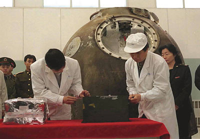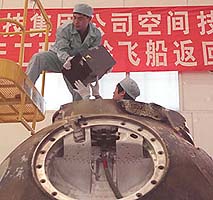 Az SJ-5 műhold (alul) 1999. május 10-én startolt, egy CZ-4B rakétával. A műhold fedélzetén többféle műszaki és tudományos kísérlet folyt. Vizsgálták a világűrben található töltött részecskéket, végeztek (az S-sávban) nagysebességű adatátviteli kísérleteket, teszteltek egy nagykapacítású szilárdtest memóriát és a súlytalanság körülményei között viszgálták különféle folyadékok viselkedését . Meg kell azt is említenünk, hogy miután Kína (katonai felderítő holdjaihoz) kifejlesztette a Földre való visszatéréshez szükséges technológiákat és azt többször sikerrel kipróbálta, az utóbbi időben az FSW-holdakon már különféle gyakorlati célú kísérleteket is végeznek. Így az FSW sorozat 10., és 12-16., tagjain anyag-, és gyártástechnológiai, mig a 12-es példányon ezeken túl még biológiai kísérletek is zajlottak. Részben idetartozik, hogy megrendelésre (tehát tulajdonképpen bérfuvarozásként) az FSW-sorozat 9-es tagjára francia, 11-es tagjára német, míg 17-es tagjára japán anyagtechnológiai kisérleti csomagokat is elhelyeztek. Képeinken az egyik korábbi Sencsu űrhajóból, a visszatérést követően kiemelik a kutatási anyagokat. Forrás: astronautix.com, sinodefence.com, spacedaily.com Ezzel a résszel befejeződött a kínai űrkutatás történetét bemutató sorozatunk. Reméljük, hamarosan beszámolhatunk az első kínai űrhajós sikeres repüléséről is. Jogi közlemény: A fenti cikk tartalma részben, vagy egészben, ingyenesen és szabadon felhasználható, amennyiben az utánközlést végző személy, szerkesztőség, illetve kiadó az anyagban forrásként egyértelműen megnevezi honlapunkat. Ennek módja: Kapcsolódó cikkek:
