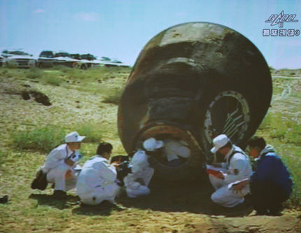 A Sencsou-9 landolása után, a kapszula kinyitásakor.