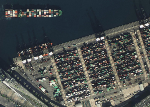 Az első, sikeresen megmentett SuperView műholdpáros egyik tagjának egyik első felvétele a Hong Kong-i kikötő konténertermináljáról. Egyetlen ilyen műhold akár mintegy 700 ezer négyzetkilométernyi felszínről lépes adatokat gyűjteni naponta. (Kép: Beijing Space View Technology)