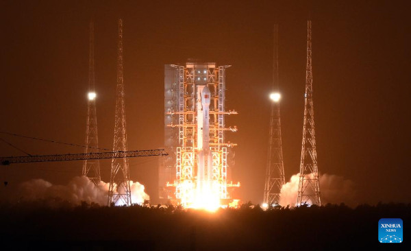 A TJSW-16 startja március 29-én magyar idő szerint 17:05-kor történt. Ahogy a fenti fénykép is illusztrálja, a helyszínen, a dél-kínai Hajnan-szigeten épült Vencsang (Wenchang) űrközpontban akkor már éjjel volt, pekingi idő szerint március 30-án 0:05. Hordozórakétaként a modern Hosszú Menetelés-7A típust vetették be (Y11 jelű start). A rakéta korábbi indításai során is jellemzően geostacionárius átmeneti pályára vitt vagy TJSW műholdakat, vagy a polgári célú Chinasat távközlési műholdsorozat egyes tagjait. A Hosszú Menetelés-7A a Tiencsou (Tianzhou) teherűrhajókat indító Hosszú Menetelés-7 háromfokozatú változata. Magassága 60 m, orrburkolatának átmérője 4,2 m. A 3,35 m átmérőjű első fokozat hengeres testében két YF-100 hajtómű szolgáltatja az emelkedéshez szükséges tolóerőt, kerozin és folyékony oxigén segítségével. A négy oldalsó segédrakéta mindegyike egy-egy YF-100 hajtóművet használ. A típus 2020 márciusában mutatkozott be az XJY-6 műholddal, de kudarcot vallott. Egy évvel később próbálkoztak vele újra, azóta viszont minden alkalommal sikerrel. Ez volt összességében a 9-edik indítása.