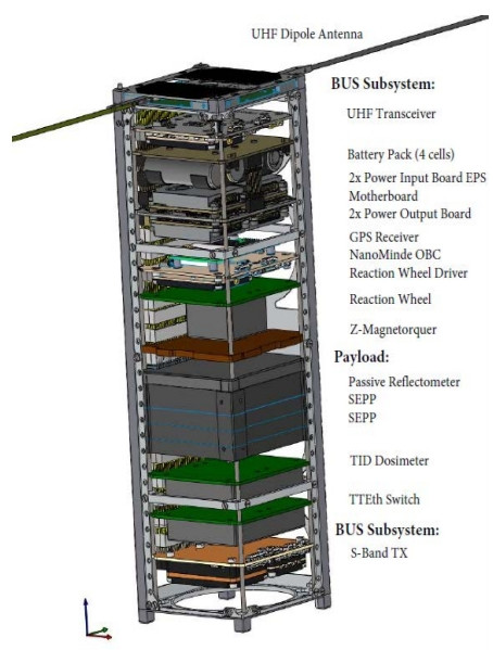 A PRETTY műhold alrendszerei. (A képek forrása: O. Koudelka ENSZ-ben elhangzott előadása)