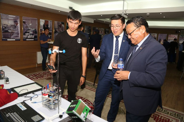 Gurragcsá és a Mazalaai csapat két tagja az Űrtechnológiai Szövetség megalakulásakor