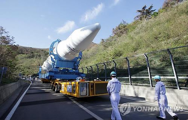 A KSLV-1 harmadik példánya, úton az indítóállásba. (Kép: KARI / Yonhap)