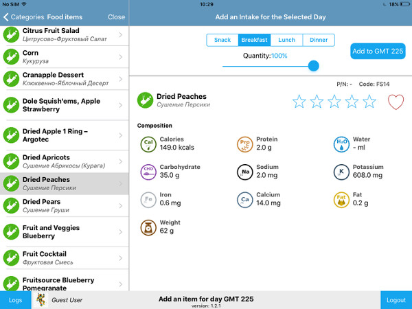 Az alkalmazásba oroszul és angolul is feltöltik az ISS-re szállított ételek jegyzékét, a listából a vonalkód leolvasása helyett az adott étel ikonjára történő koppintással is választhatnak. Ha valami mégsem szerepelne a listában, az űrhajós lefényképezheti. Az eszköz előnye, hogy az alkalmazás kapcsolatot teremt a földi táplálkozástudományi szakértőkkel, akik az űrrepülés közben is tudnak táplálkozási tanácsokat adni az űrhajósoknak. A hetenként tartott szakértői tanácsadásokon felül az alkalmazás azonnal is javaslatot tud tenni az űrhajósoknak, miből és mennyit fogyasszanak. Az alkalmazás a bevitt energiamennyiségen kívül kiemelt figyelmet fordít az elfogyasztott fehérje, víz, szénhidrát, zsír, nátrium, kálium, kalcium és vas mennyiségének követésére.