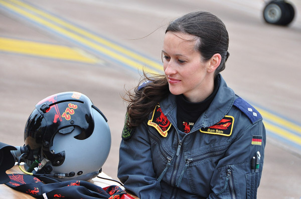 Nicola Baumann, a Luftwaffe vadászpilóta főhadnagya, aki nem adta fel űrhajósálmait, azonban azt nem a Die Astronautin projekt keretében szeretné megvalósítani. (Kép: Wikimedia)