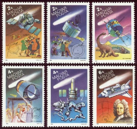A Halley-üstökös 1986-os napközelsége alkalmából kiadott magyar bélyegsorozat. A Giotto-bélyeg a bal
