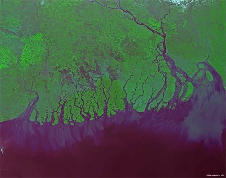 A Proba-V képe a Gangesz deltavidékéről 2014. február 2-án készült. (Kép: ESA / VITO)