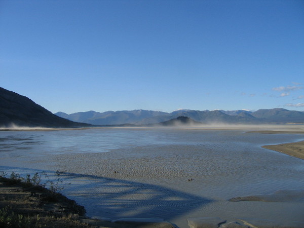 A szinte teljesen elapadt Slims folyó torkolata a Kluane-tó déli végében. (Kép: Wikipedia)