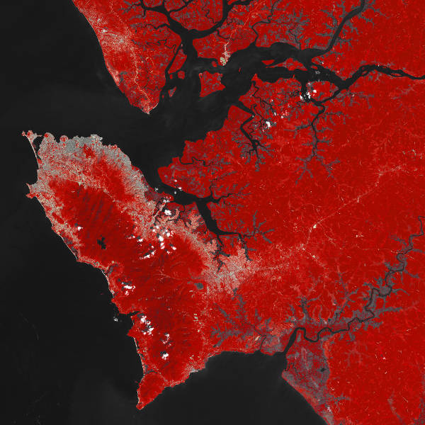 A Sierra Leone-félsziget a Landsat–5 TM műszerének 1986. január 3-i felvételén.(Kép: NASA EO / Joshua Stevens / USGS)