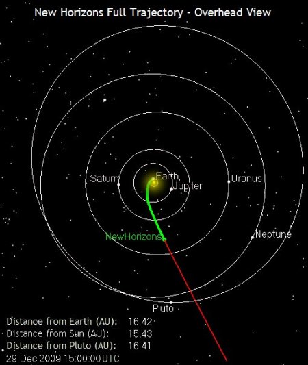 A NASA 2006 januárjában indított szondája 2015 júliusában közelíti majd meg a Plútót és holdrendszerét. A Naprendszerből kifelé tartó űreszköz december 29-én 2,463 milliárd kilométer távolságba jutott már a Földtől, miközben csak 2,462 milliárd km-re volt a törpebolygótól. A New Horizons jelenleg naponta 1,2 millió km távolságot tesz meg.