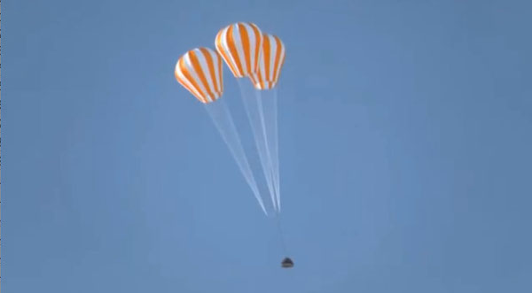 4:13 körül lép be a visszatérő kabin a sűrű légkörbe. A légellenállás miatt a legnagyobb hőmérsékletét 4:15-kor éri el.