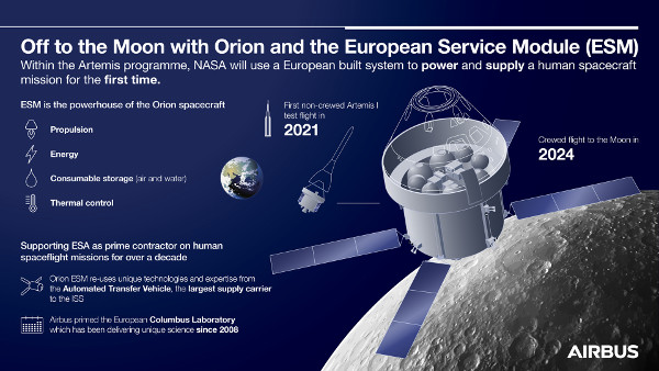 Az Európai Űrügynökség (ESA) az Airbusszal szerződött egy újabb, harmadik kiszolgáló modul megépítésére, mely az amerikai űrkapszula, az Orion kiszolgáló egysége lesz. A megállapodás értéke mintegy 250 millió dollár. A kiszolgáló modul (European Service Module, ESM) rendelésével az ESA a NASA Artemis programjának folytatását is biztosítja. A harmadik európai kiszolgáló modult (Artemis III Mission) arra használják majd, hogy több mint 50 évvel az Apollo-17 útja után ismét űrhajósokat juttathassanak a Holdra.
