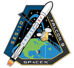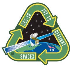 Kiegészítés (2017. április 2.): Amint azt Kovács Krisztián kedves olvasónk jelezte, a lap tetején látható, háromszögre hasonlító, az újrahasznosítás jelzésére általánosan használt szimbólumot továbbgondoló jelvény nem a SpaceX által kiadott hivatalos változat a SES-10 felbocsátása alkalmából. A hivatalos jelvényt itt mutatjuk be. Az újrahasznosításra itt az első fokozat szürkés árnyalata utal. Elnézést kérünk a tévedésért, és köszönetet mondunk a korrekcióért!
