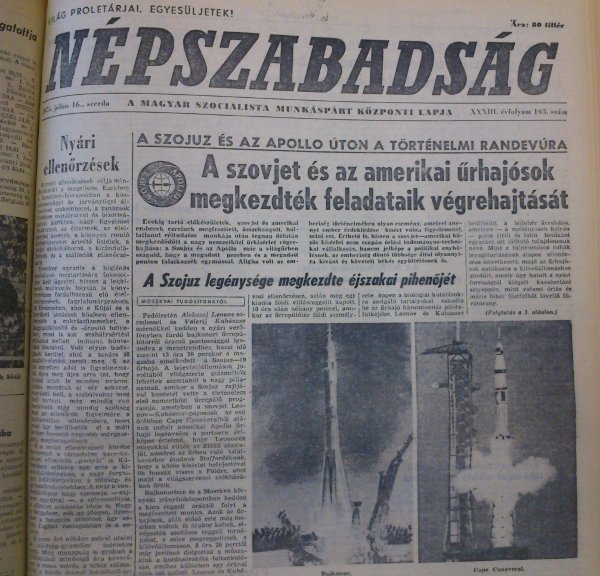 „Világ űrhajósai, egyesüljetek!” – avagy a Népszabadság 1975. július 16-i számának címoldala a rakéták indításával.