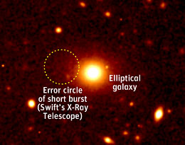 A jelek arra mutatnak, hogy a GRB 050509B jelzést kapott kitörés egy idős csillagokból álló elliptikus galaxis külső vidékén történt, tőlünk 2,7 milliárd fényév távolságban. Az ultraibolya és a látható fény tartományában a Swift, és a riasztás után a nagy földi távcsövek sem észleltek semmit.