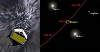 Az anyaszondának a szétkapcsolódás után sikerült lefényképeznie a távolodó becsapódó egységet (a fényes pont a felvtel közepén). Kapcsolódó cikkek: Kapcsolódó linkek: