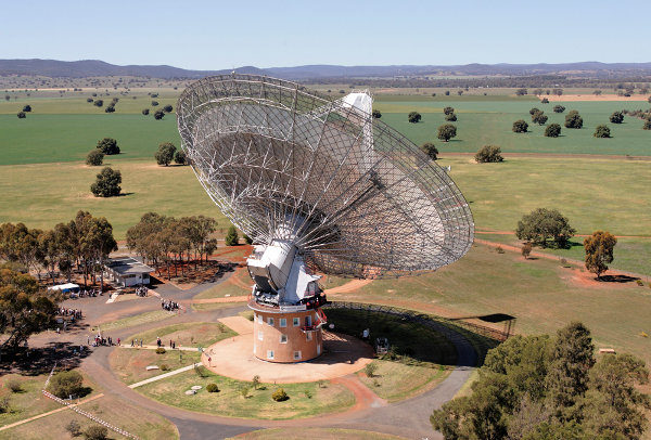 Az ausztráliai Parkes 64 m-es rádióteleszkópja, az első és egészen mostanáig az egyedüli, amellyel ilyen rövid rádiófelvillanásokat detektáltak. (Kép: Shaun Amy / CSIRO)