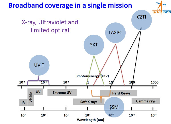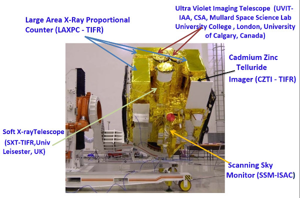 Az Astrosat műszerei az ibolyántúli és a röntgentartományt vizsgálják.