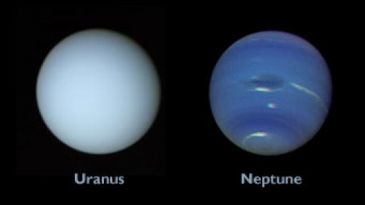 Az Uránusz és a Neptunusz a Voyager–2 1980-es években készített felvételein. Eddig ez volt az egyetlen űrszonda, amelyik a két távolabbi gázóriás közelében elrepült. (Kép: NASA)
